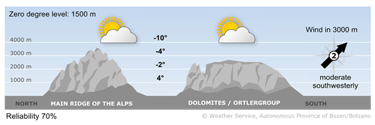 South-westerly currents will bring moist and fairly mild air masses to the Alps.