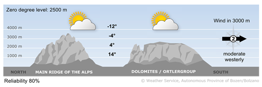 Monday will start off very sunny. As the day progresses, cumulus clouds will form, and isolated showers cannot be entirely ruled out in the afternoon. Föhn will blow in the northern valleys.