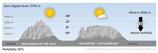 The sun will shine from morning till evening from a largely cloudless sky. Northerly wind will continue to blow in the villages near the main Alpine ridge.