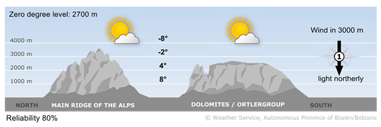 It's bright and sunny all over the region. Apart from morning fog patches in the Bruneck area, the sky is cloudless.