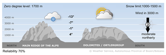A weak disturbance will reach the Alps, causing variable conditions.