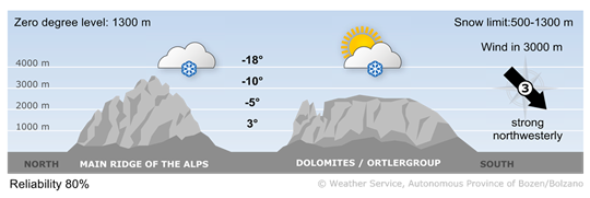 Strong north-westerly currents will bring moist air masses closer to the Alps.